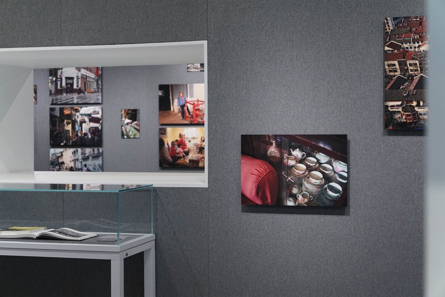 “拍照是我好不容易找到的快乐。”陆元敏说。展览第一部分“在上海”汇集了他镜头之下,近年来上海城市变迁中的超现实瞬间。镜头透过一半玻璃“看到”日常街景,两位老人相扶过街,匆匆忙忙的快递小哥正在等红绿灯,而另一半玻璃却映照出光怪陆离密密麻麻的高楼大厦;对面是外滩胜景,一块玻璃的倒影“悬浮”其间。“仔细看看丰富多彩的上海,彩色效果也蛮好的。城市在不断变化,光线在不断变化,照相机也在不断变化,足够好玩。” 陆元敏坦言,从黑白胶片转向彩色数码摄影之初,曾心存疑虑,但上海“丰富多彩”的现实让他坚定了尝试。“不知道你有没有注意到那些里弄,很有老的巴黎的质感,很有趣,但转一个巷子,出现一个银发老人在晾晒被子,明晃晃的阳光,营造了很好的氛围,我甚至一瞬间觉得那像我的妈妈在那忙碌。”